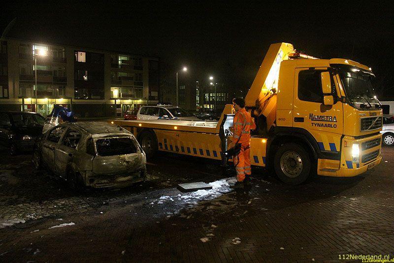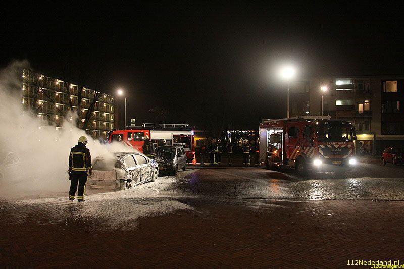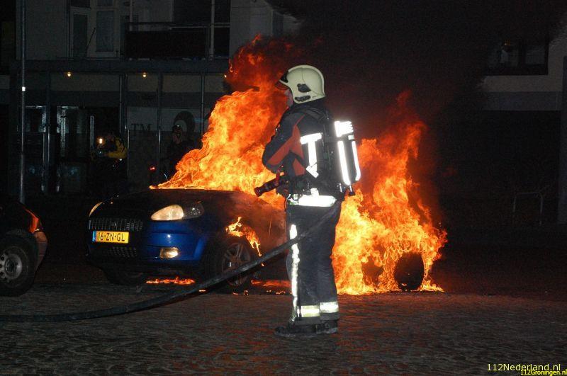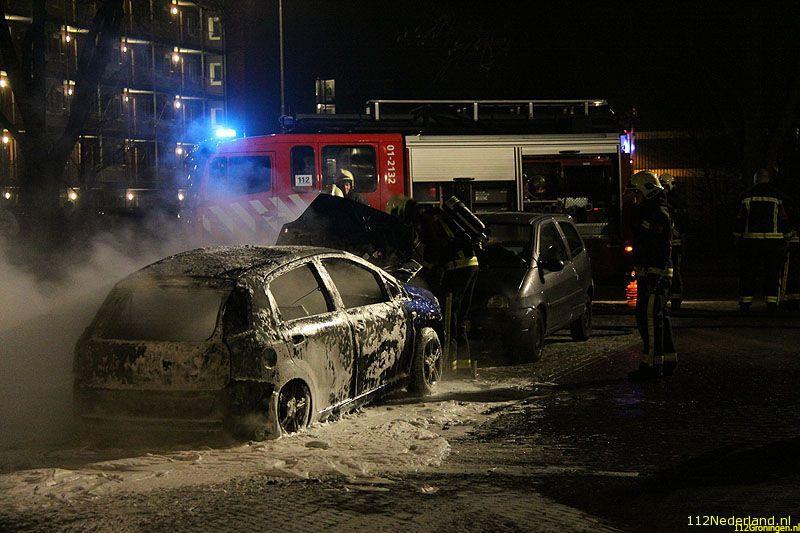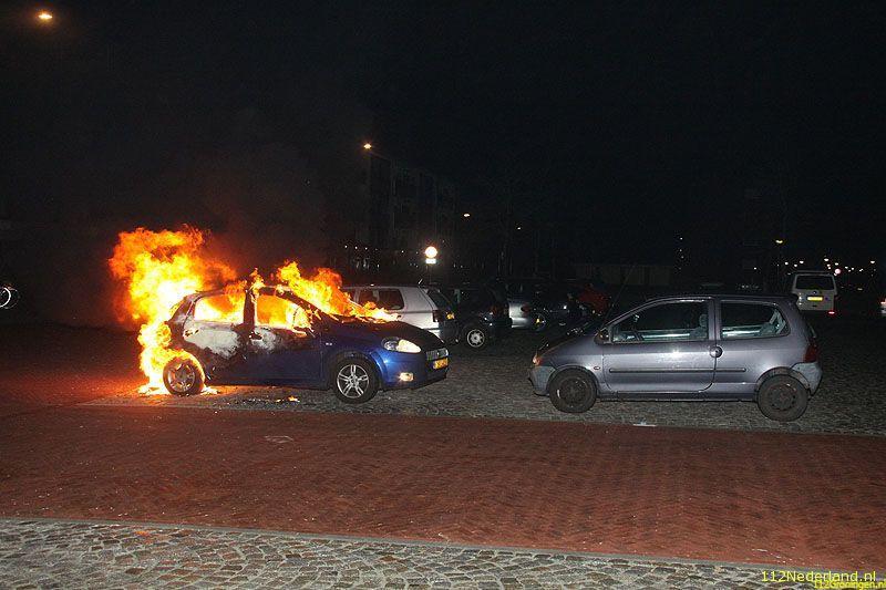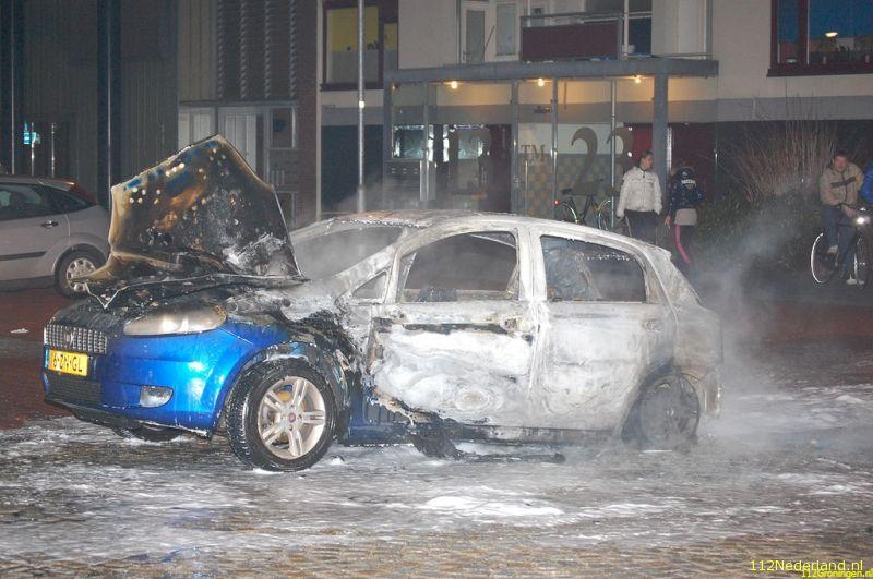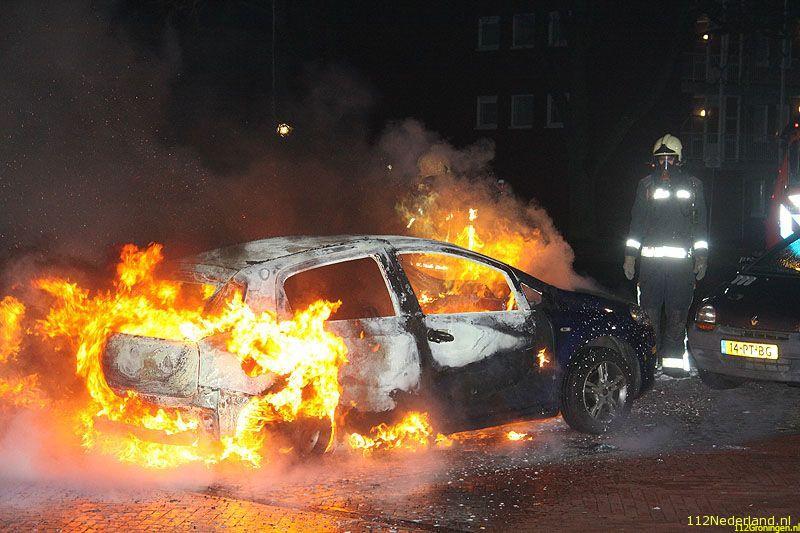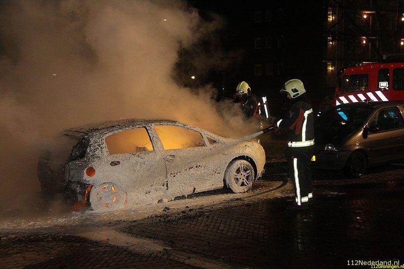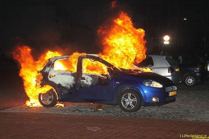 Hoogezand - Een vier jaar oude Fiat is in de nacht van donderdag op vrijdag bijna volledig uitgebrand op het Rembrandtplein in Hoogezand, de brand werd om 01.52 uur ontdekt doordat omwonenden gewerkt werden door een toeterende auto die al voor een groot deel in brand stond.