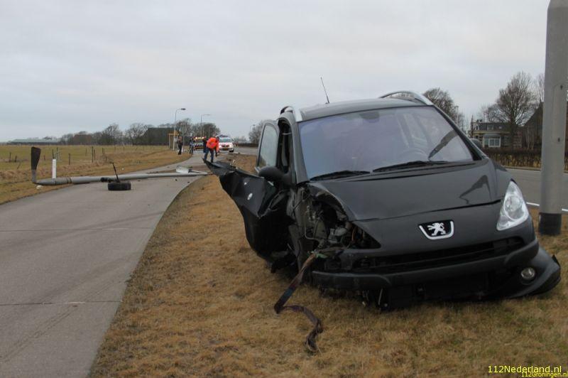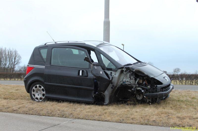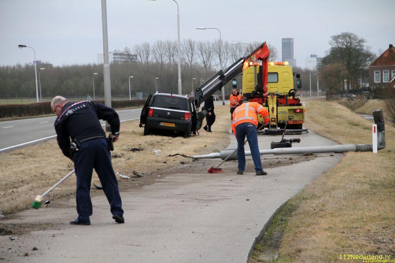 De vrouw raakte door nog onbekende oorzaak van de weg en botste op een lantaarnpaal die over de busbaan kwam te liggen. De vrouw reed vervolgens enkele meters door de berm en kwam verderop tot stilstand met haar zwaar beschadigde auto. Het rechtervoorwiel was onderweg ook nog los geschoten en kwam ook op de busbaan terecht. De gealarmeerde brandweer hoefde niet in actie te komen, wel is de vrouw even onderzocht door ambulancepersoneel. Vervoer naar het ziekenhuis was niet noodzakelijk.