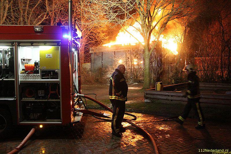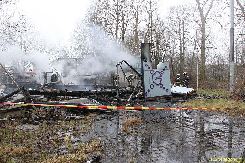 Hoogezand - Een uitslaande brand heeft in de nacht van zaterdag op zondag de voormalige klaslokaal(lassen) van het voormalig Aletta Jacobs College aan de Erasmusweg in Hoogezand in de as gelegd.