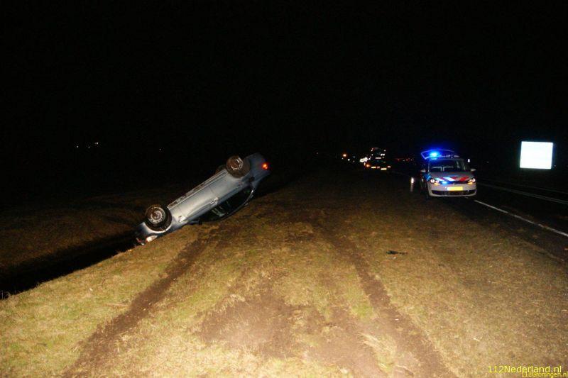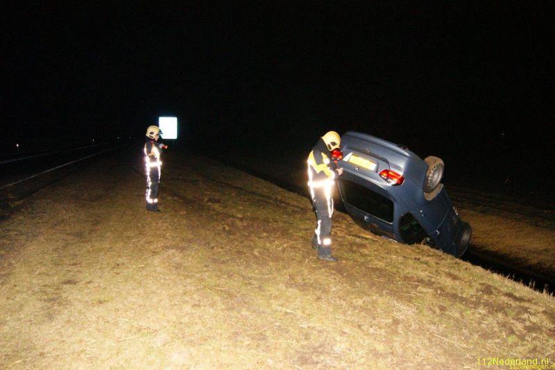 Getuigen zagen dat een automobilist, die met hoge snelheid op de N33 reed, plotseling in de problemen raakte. Volgens getuigen verloor de bestuurder de macht over het stuur en kwam op de kop in de naastgelegen sloot/greppel tot stilstand. Getuigen zagen dat de bestuurder er na het ongeval ervandoor ging. Toen agenten bij het ongeval kwamen ontbrak van de bestuurder ieder spoor. Tijdens een zoektocht in de omgeving werd een speurhond ingezet. Ook de brandweer van Zuidbroek hielp mee met de zoektocht. Dit leidde niet direct naar de bestuurder.