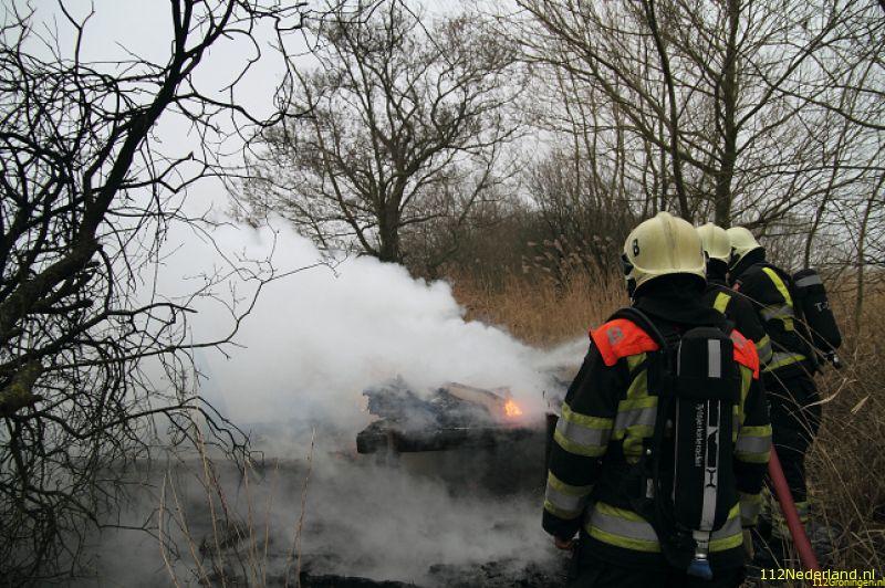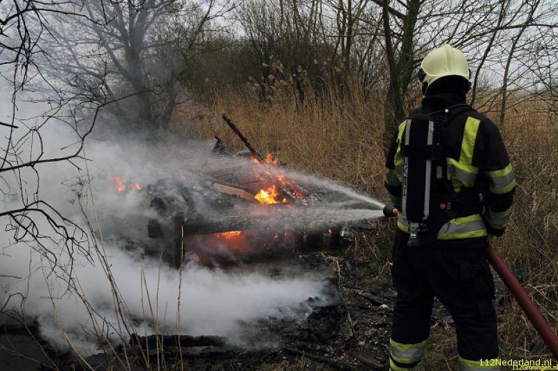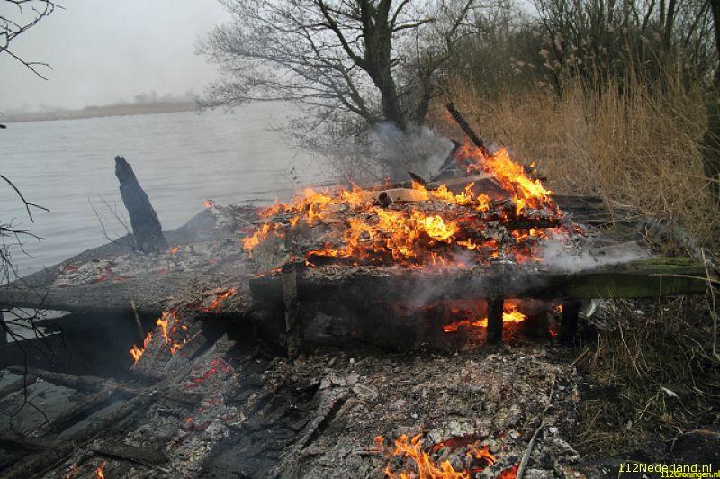 Oudega - In het land aan de Wolwarren bij Oudega is maandagmiddag een jagershut afgebrand. Een jongen uit de straat ontdekte rond 14:45 uur de brand en heeft via 1-1-2 de hulpdiensten gewaarschuwd en hen bij de ingang van het land opgewacht.