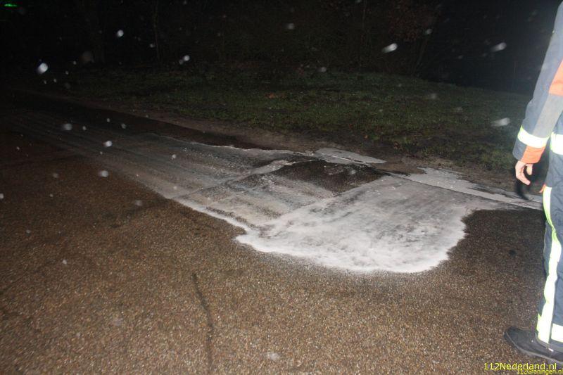 Ter plaatse bleek het om grote hoeveelheid olie te gaan op een kleine afstand. De brandweer kwam ter plaatse met een spuitwagen. De brandweer moest gelijk weer even weg om de Gemeentewagen op te halen met een aanhanger waar oplosmiddelen in kunnen. Na 10 minuten waren ze weer terug en werd het wegdek gereinigd. Nadat dat klaar was vertrok de brandweer weer.