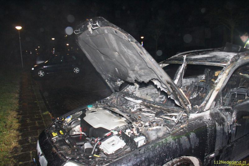 Groningen - In de nacht van woensdag op donderdag werd de brandweer opgeroepen voor een autobrand op de Muntinglaan in het zuiden van de stad. De auto stond op een parkeerplaats tegenover het Noorderpoort college.