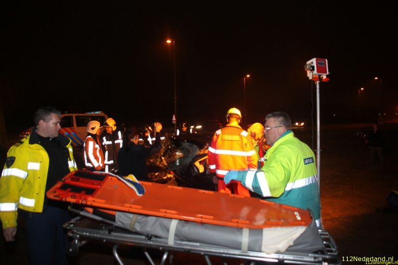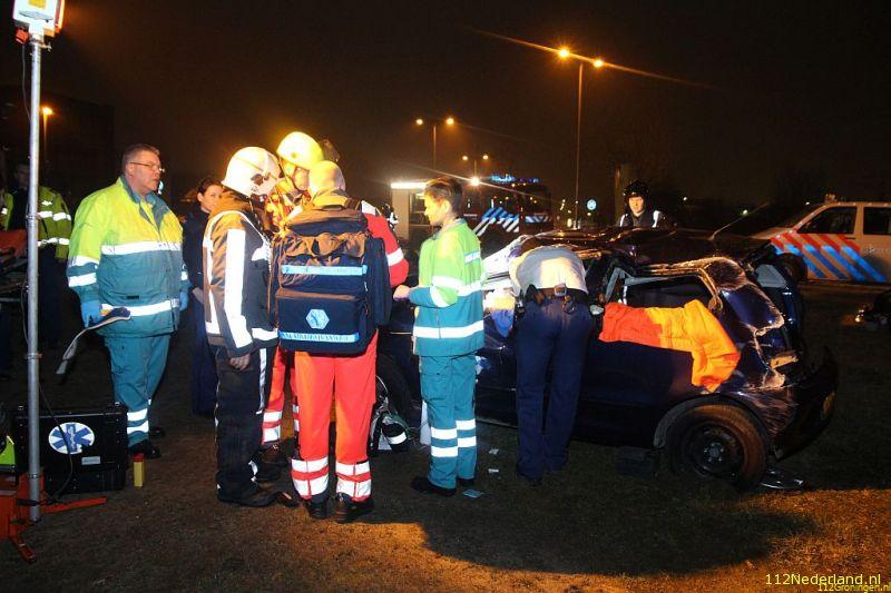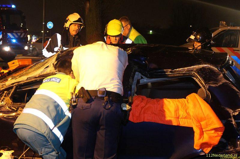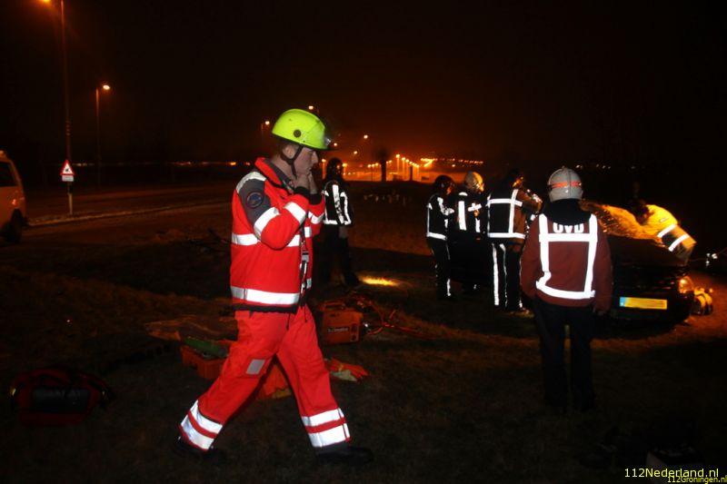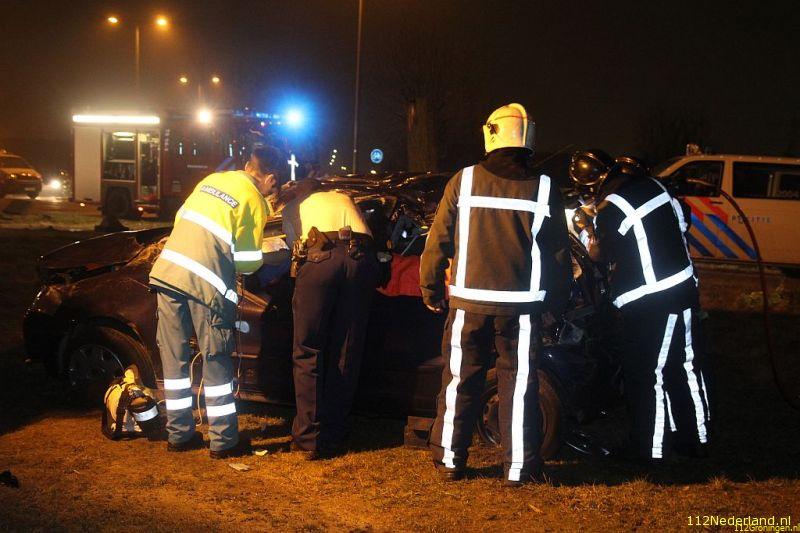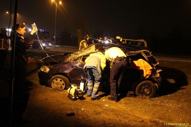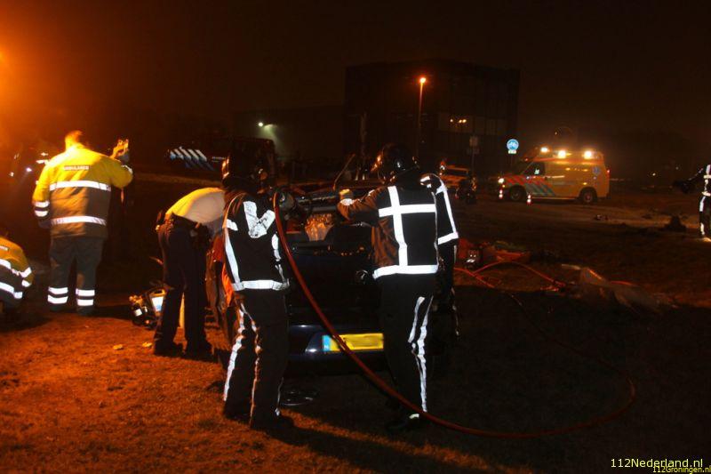 In de bocht bij de Gamma verloor de bestuurder vermoedelijk de macht over het stuur en werd gelanceerd door enkele betonblokken. Het voertuig sloeg daarna over de kop en kwam even verderop zwaar beschadigd weer tot stilstand. De brandweer heeft een deur uit de auto geknipt om het slachtoffer veilig naar buiten te kunnen krijgen. De bestuurder is later met spoed overgebracht naar het ziekenhuis. De arts van het traumateam is meegegaan met de ambulance.