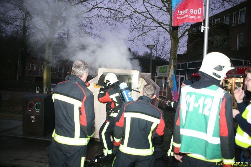 De brandweer van Assen was nog druk bezig bij de brand aan de W.A. Scholtenstraat toen er via C2000 gevraagd werd om assistentie te verlenen bij een brand in een kledingcontainer aan het Sticht in Assen. De politie meldde bij aankomst van de brandweer dat er meerder containers in de wijk in brand stonden of hadden gestaan. Op de Hoofdlaan ging een brievenbus in vlammen op, op het sticht een kledingcontainer en een tweede container op twee verschillende locaties. Ook op de Wouden was een container in brand gestoken. Diverse branden waren reeds door de politie geblust.