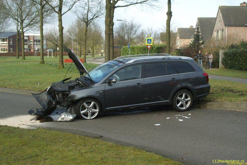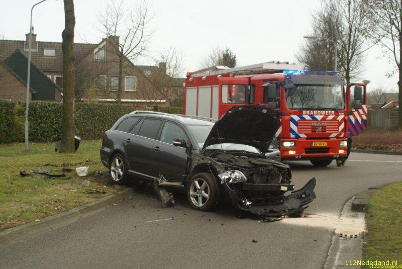 Emmen - Op de brandgans in woonwijk de Rietlanden in Emmen botste maandagmorgeneven na half negen een 52-jarige vrouw uit die plaats met haar auto eerst tegen een verkeersgeleider en daarna tegen een boom.