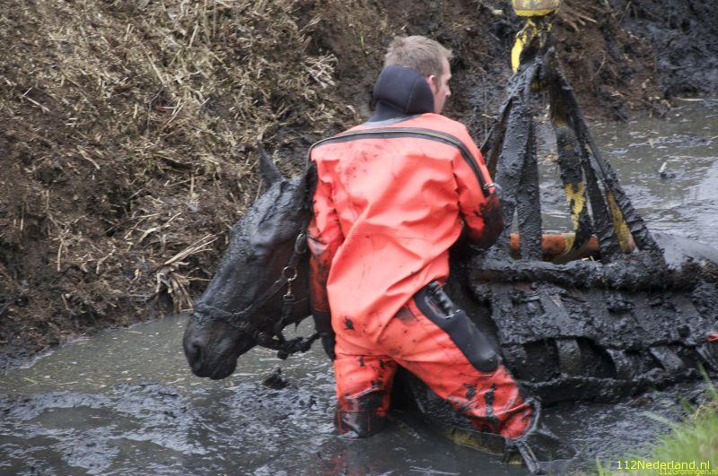 Duikers en een kraanwagen van de brandweer gingen ter plaatse, hierbij troffen ze een uitgeput paard in de sloot aan. Door snel optreden van de eigenarresse, en omstanders werd de brandweer gebeld, en kon het paard snel uit de sloot halen.