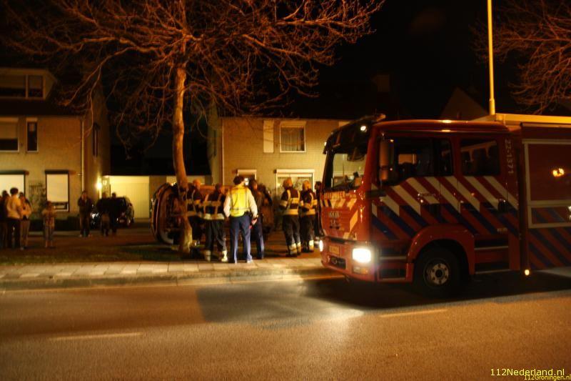 De opgeroepen brandweer en politie moesten voor de melding wel naar de Heuveleind in Best door een fout in melding werd een ander adres opgeven. Ter plaatse bleek een auto door een verhoging van de bushalte op zijn kant terecht te zijn gekomen. De brandweer heeft geen inzet hoeven doen. Een takelbedrijf zal de auto komen bergen.