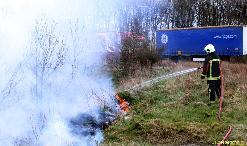 De brandweer moest alle zeilen bijzetten om het vuur te doven dat in de ruigte woedde. Uiteraard had de brandweer de lammen ondanks de aanwakkerende wind snel onder controle en bleef er alleen een zwart geblakerd veldje over. Maar niet getreurd als het weer mee zit zal dit zwart snel weer groen worden. Het geen inhoud dat sommige branden goed zijn voor de ontwikkeling van nieuws groen. Onbekend is hoe het vuur is ontstaan, maar volgens de brandweer zijn de bermen wel zo droog dat een weggeworpen sigaret al voor een brand kan zorgen.
