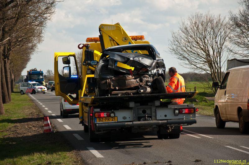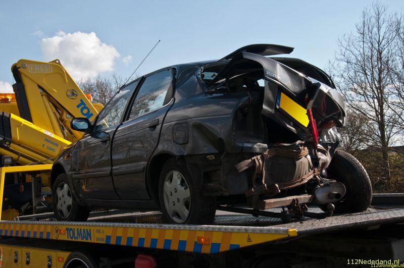 Hij dacht bij de kruising met de Butewei te kunnen keren, maar zag daarbij een zware kraan over het hoofd. Een botsing was het gevolg. De personenauto kwam in de sloot tot stilstand. De inzittenden (een man en een 3 maanden oude baby) raakten als door een wonder niet gewond. De personenauto is bij de aanrijding volledig vernield. De kraan had in verhouding slecht lichte schade. Het verkeer had in de avondspits behoorlijk last van het ongeval, in beide richtingen ontstond een file.