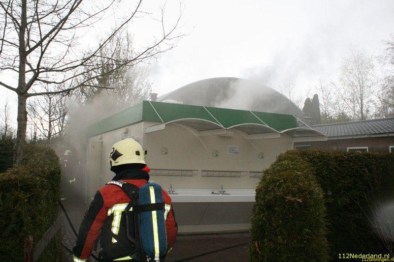 Wateren - Zondagmiddag omstreeks 12:15 uur werd de brandweer van Diever gealarmeerd voor een gebouwbrand op een camping aan de Schurerslaan in Wateren.