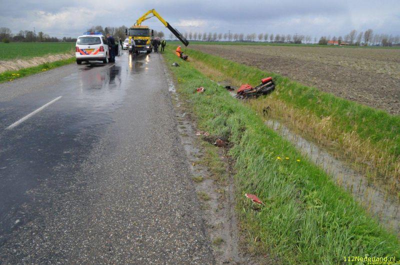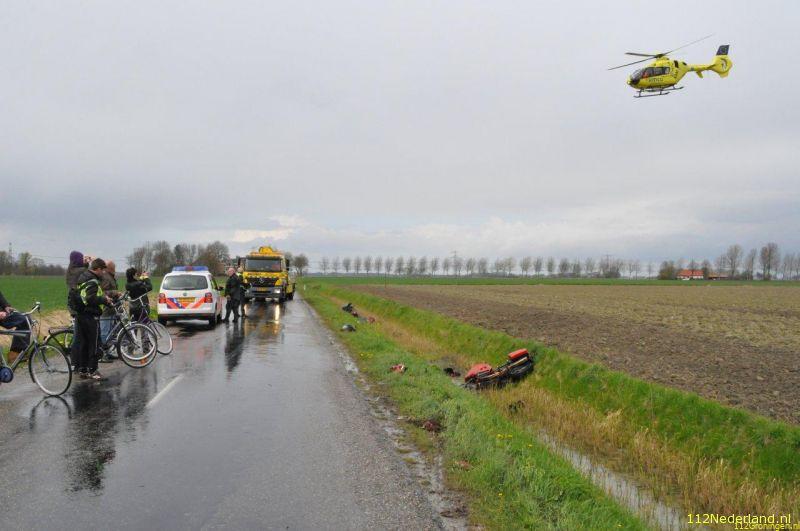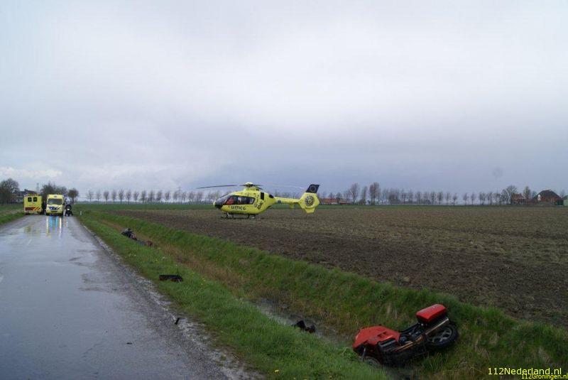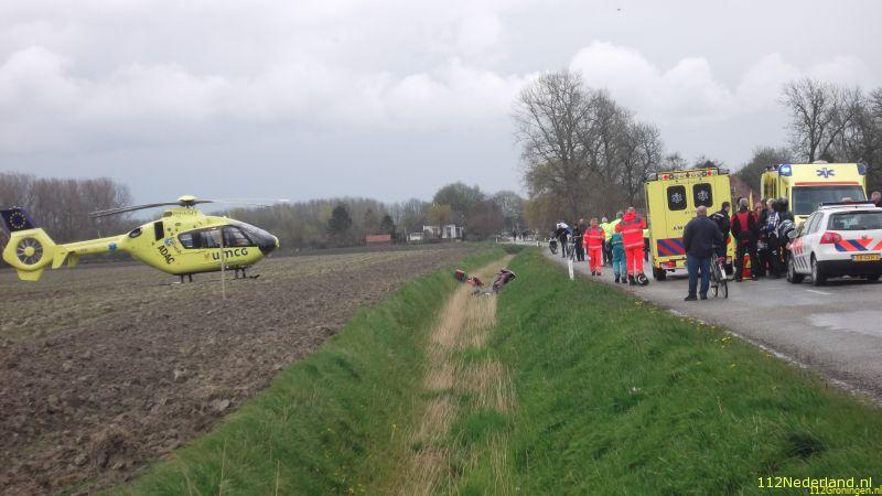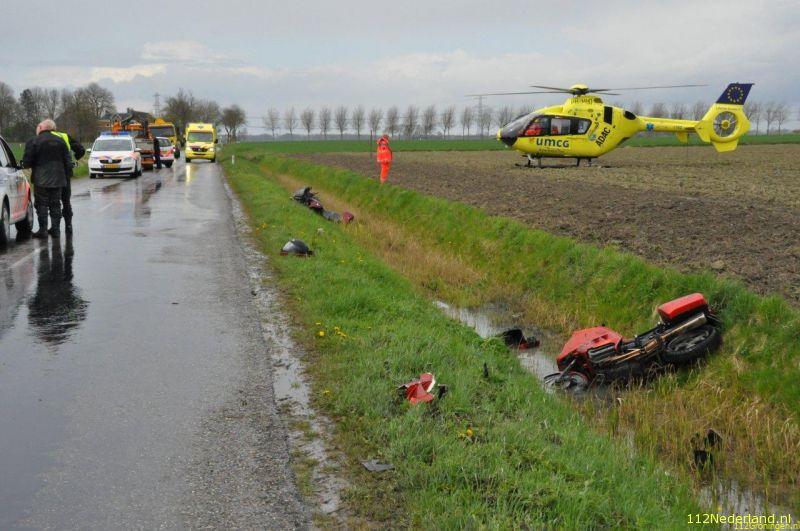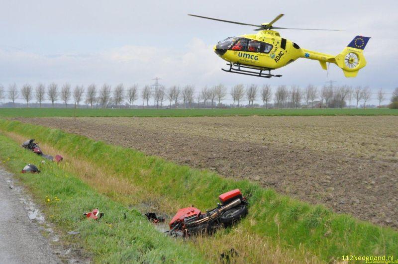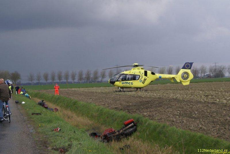 Een grote groep motoren was aan het toeren door Loppersum. Omdat de Zeerijperweg heel erg glad was kwamen de drie motorrijders(ster) ten val. De traumahelikopter en twee ambulances kwamen ter plaatse om de motorrijders(ster) aan hun verwondingen te helpen. Berger Dallinga kwam ter plaatse om de twee motoren die in de sloot lagen te bergen. De ambulance ging met spoed naar het UMCG. Twee mensen hadden schaafwonden en de vrouw(34) had last van de rug en knie. Ze is inmiddels weer thuis.