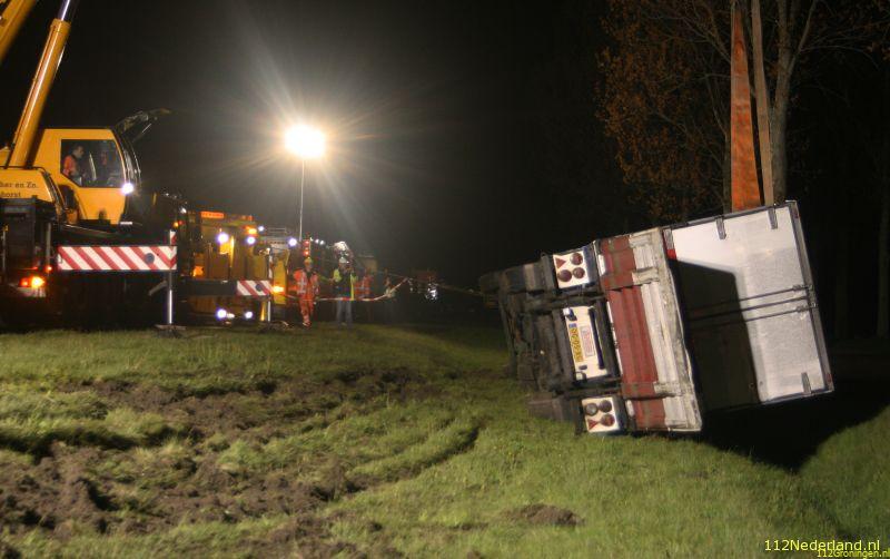 Een 24-jarige vrachtwagenchauffeur uit Stadskanaal reed over de A32 in de richting van Steenwijk toen hij ter hoogte van Meppel onwel werd. De vrachtwagen reed van de vluchtstrook, door de berm en kwam op de zijkant tot stilstand in de naastgelegen greppel. De chauffeur is met rugklachten overgebracht naar het Diaconessenhuis te Meppel. Een bergingsbedrijf heeft de vrachtwagen geborgen.