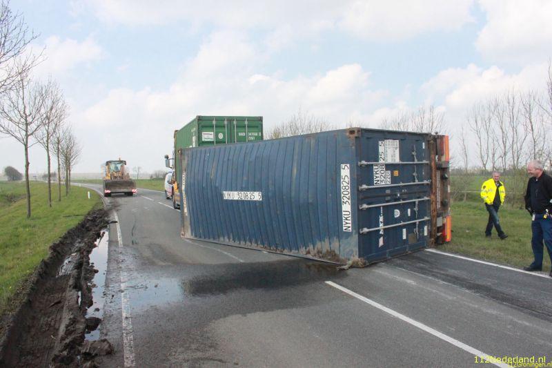 Appingedam - Op de N362 nabij Delfzijl was woensdagmiddag rond 13:00 uur een ongeval met een vrachtwagen. De aanhanger kwam op de zijkant .