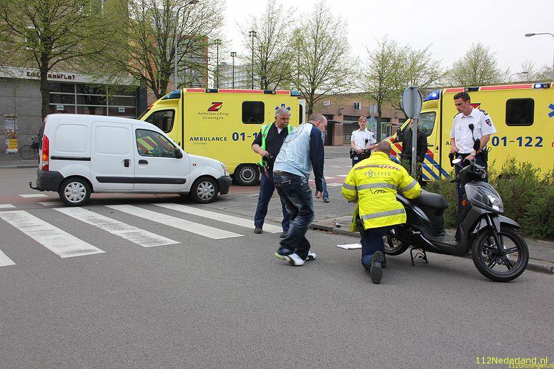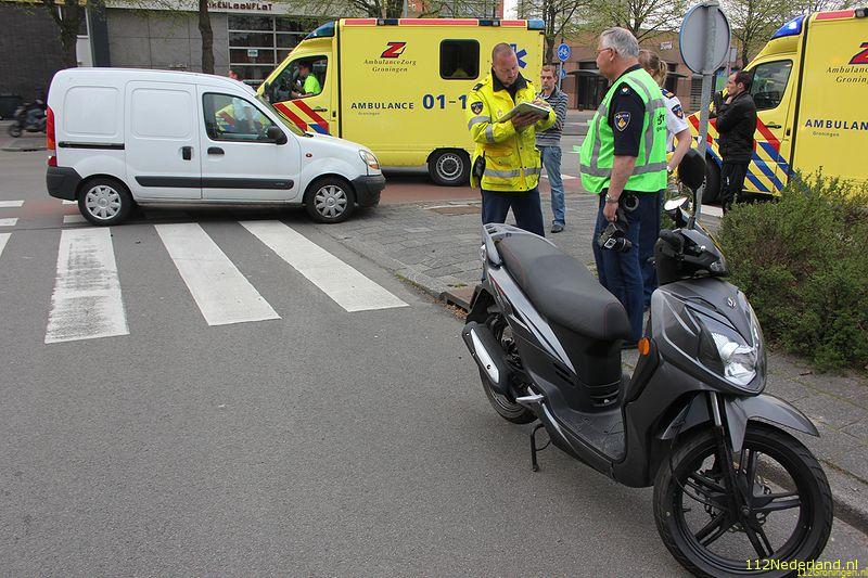 Groningen - Een 34-jarige vrouw uit Groningen is donderdagavond op de Kastanjelaan op haar snorfiets aangereden door een 26-jarige automobilist uit Groningen. De man kwam uit de Esdoornlaan en reed via de Eikenlaan richting de Kastanjelaan.