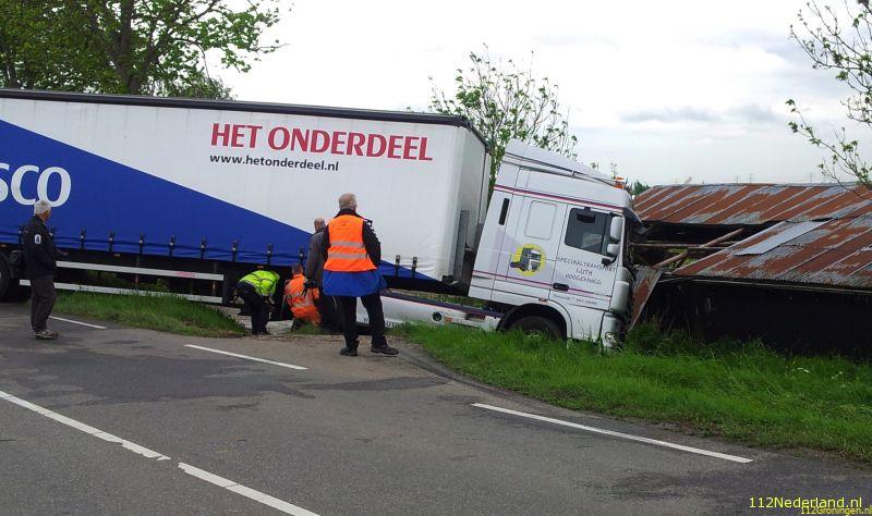 De schuur raakte hierbij beschadigd. Vermoedelijk is de vrachtwagen chauffeur in de berm terecht gekomen en is toen de macht over het stuur verloren. Het was volgens de politie maar goed dat de vrachtwagen door een grindpad nog sterk werd afgeremd anders had het ongeval zeker ernstiger gevolgen gehad. De bestuurder raakte niet gewond. Een berger heeft de vrachtwagen uit de berm getrokken.