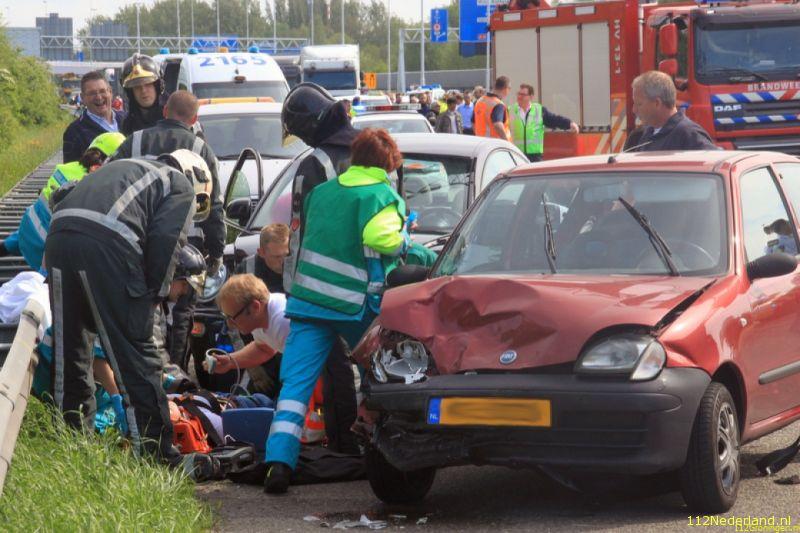 Bij de botsing raakte zes personen gewond. Eén slachtoffer raakte zwaargewond. De hulpdiensten kwamen met veel materiaal ter plaatse. Zo waren er zes ambulances, een traumahelikopter, en vijf brandweervoertuigen ter plaate. De gewonden zijn overgebracht naar ziekenhuizen in de buurt. De verkeersongevallen analyse onderzoekt hoe het ongeval kon gebeuren. Bij de aanrijding waren acht voertuigen en een vrachtwagen betrokken. De vrachtwagen botste tegen een auto die in de file stond. De auto botste tegen een andere auto. Door een kettingreactie werden acht auto's geraakt.