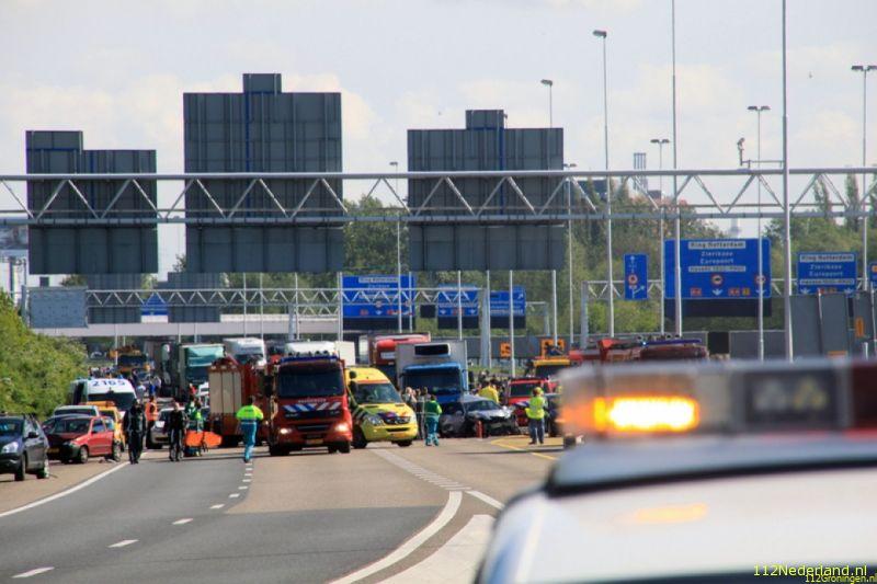 Schiedam - De snelweg A4 tussen de Beneluxtunnel en het Kethelplein in vrijdag enkele uren afgesloten geweest na een ernstige kettingbotsing.