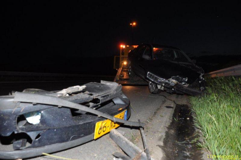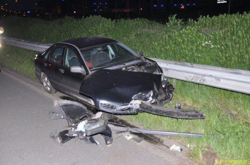 De bestuurder was door nog onbekende oorzaak uit de koers geraakt en was tegen de wegbeveiliging tot stilstand gekomen. Vanwege vermoed alcoholgebruik is van de man in het ziekenhuis bloed afgenomen. Het letsel van de automobilist is nog onbekend. De politie doet verder onderzoek.