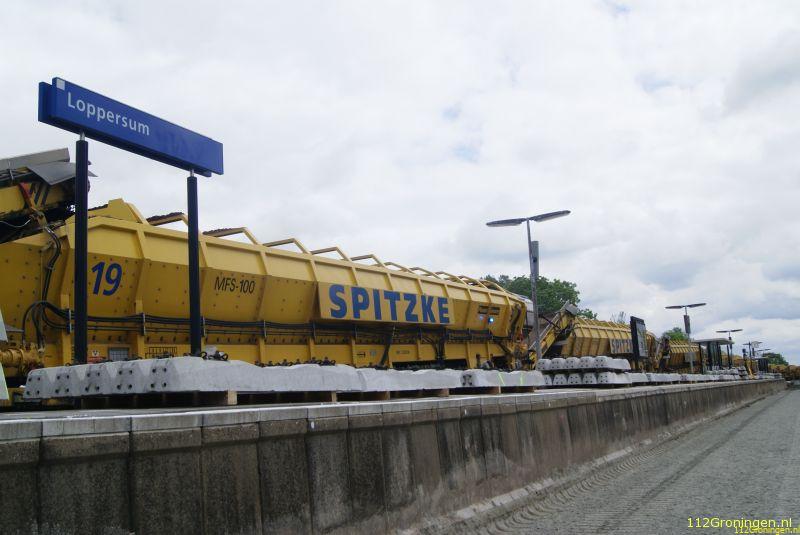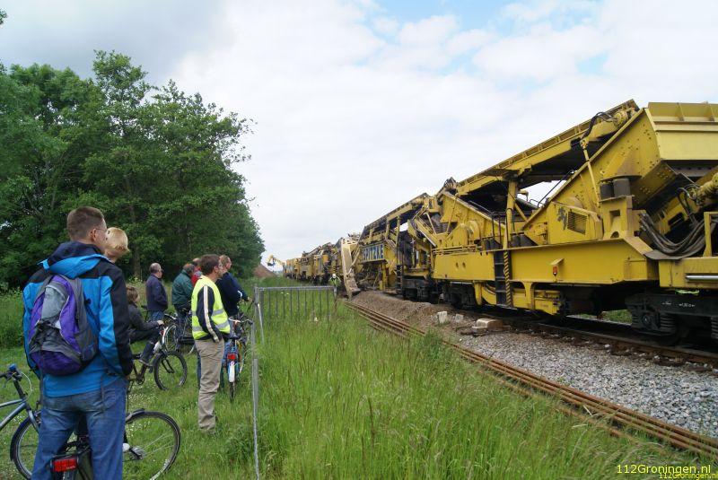 Loppersum - De kolossale trein, genaamd 'Katharina die Grosse', knapt het spoor tussen Sauwerd en Loppersum op.