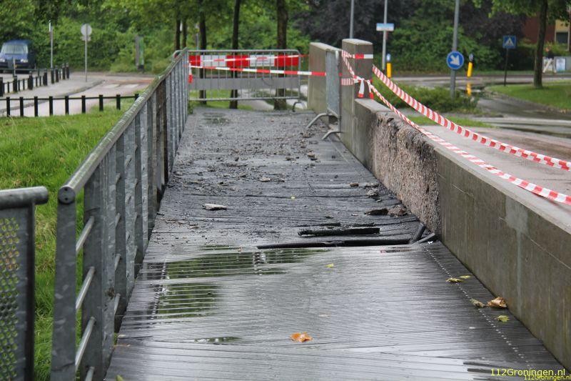 Brandstichting word niet uitgesloten. Een aantal mensen kwam op de brand af.  De brug is zwaar beschadigd. De vlammen waren zo heftig dat de betonnen rand aan de kant van de weg afbrokkelde.