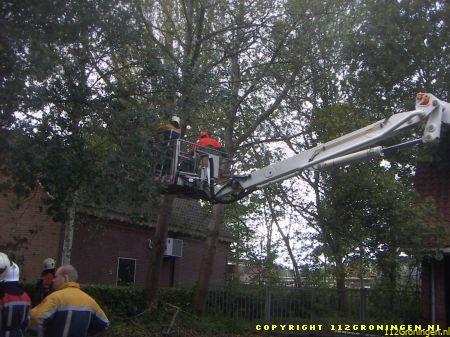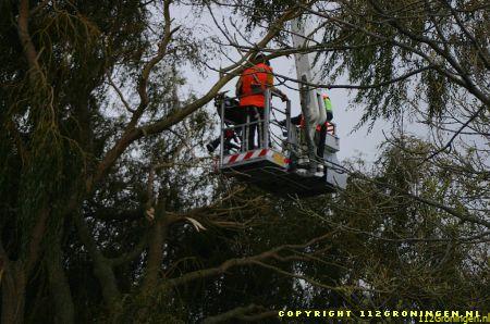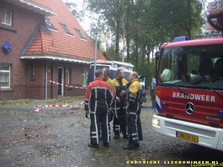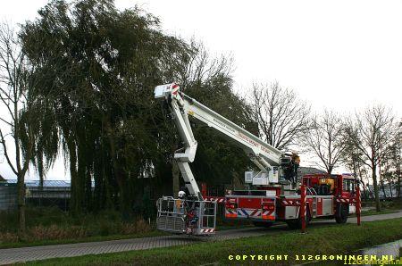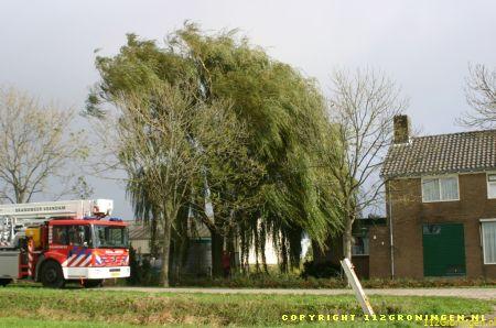 Brandweer Slochteren kreeg woensdagmiddag een melding van stormschade aan de Zuiderweg in Slochteren. Ter plaatse aangekomen bleek er een boom tegen de politiepost te zijn gevallen. Hierop werd ook de hoogwerker van Hoogezand-Sappemeer opgeroepen zodat de boom verwijderd kon worden. De hoogwerker moest vanaf Westerbroek komen die daar was ingezet voor een schoorsteenbrand. Er vielen geen gewonden. (Harold Hofstede/112Gr.) Zuidbroek – Om 11.55 uur werd de hoogwerker van Veendam voor stormschade naar Zuidbroek gestuurd. Aan de Akkers 17 dreigde een aantal grote takken van een populier op een woning te vallen. In samenwerking met de gemeentewerken van Menterwolde zijn de takken verwijderd, waarna het gevaar was geweken. (Michael Huising/112Gr.)