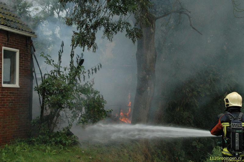 Ter plaatse bleek er een flinke brand te woeden in de schuur achter de woning. Door snel optreden van de brandweer kon het woonhuis worden behouden.