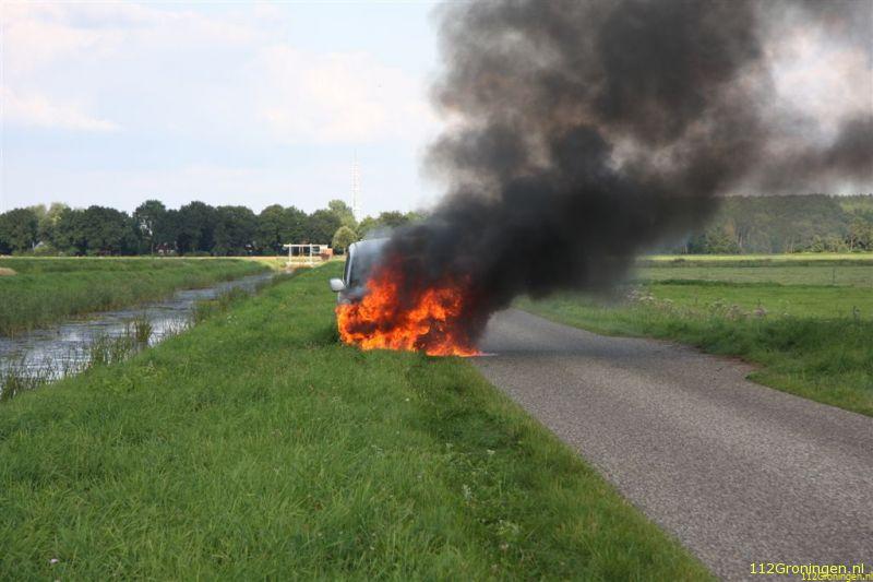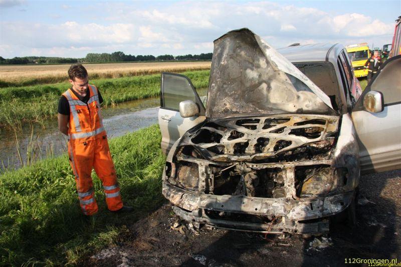 De totaal verwoeste auto is geblust door de brandweer van Stadskanaal en vervolgens afgesleept door bergingsbedrijf Keizer.