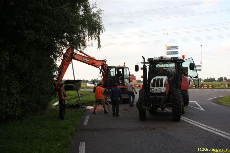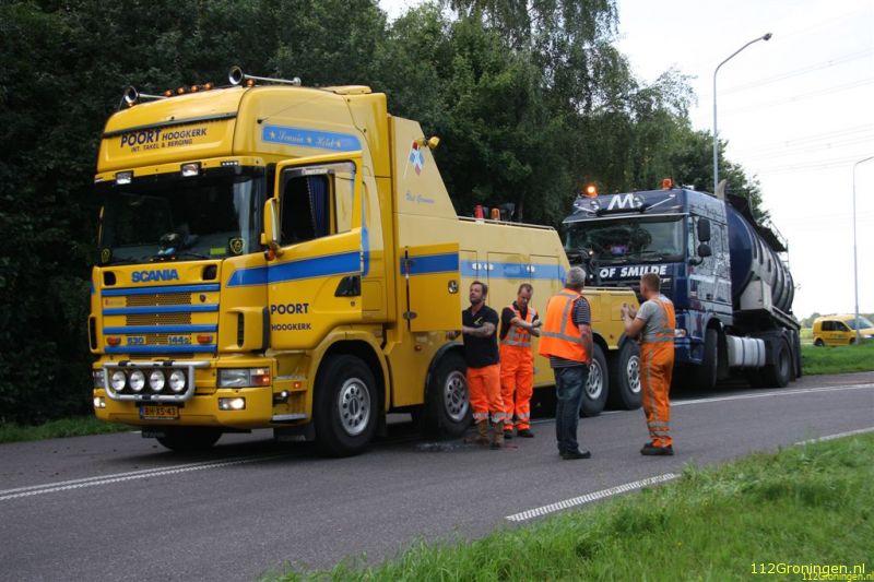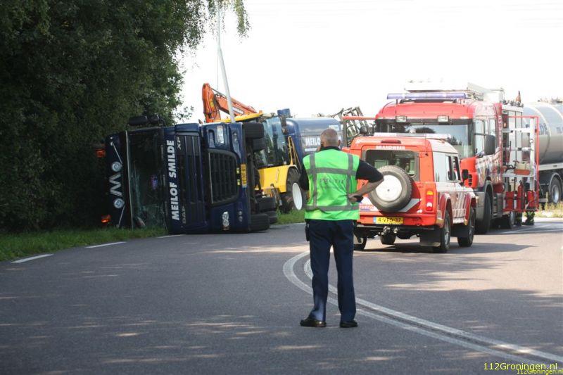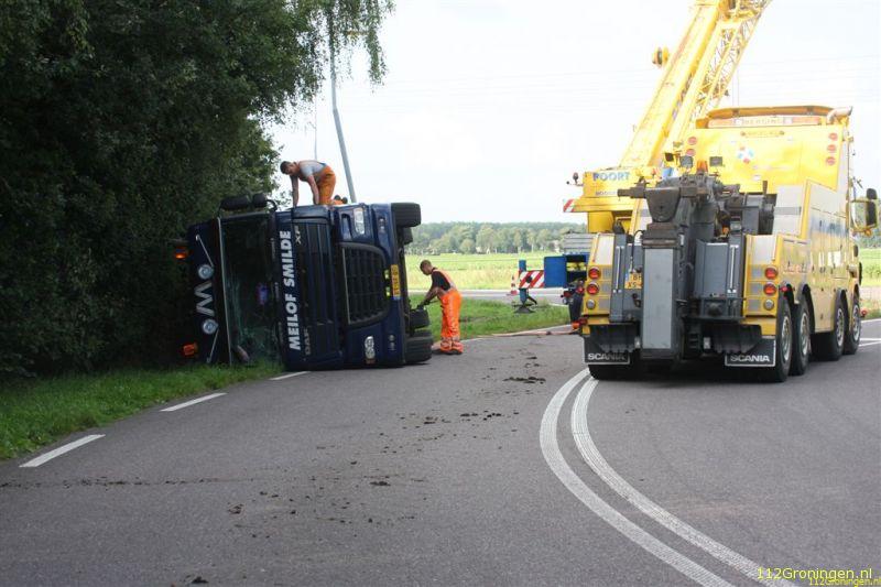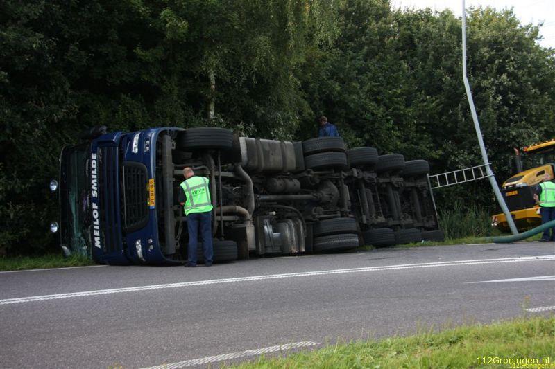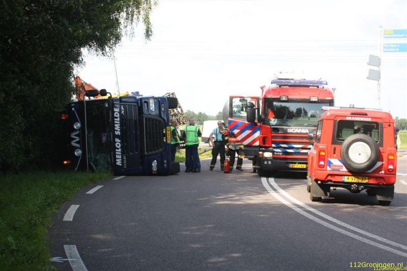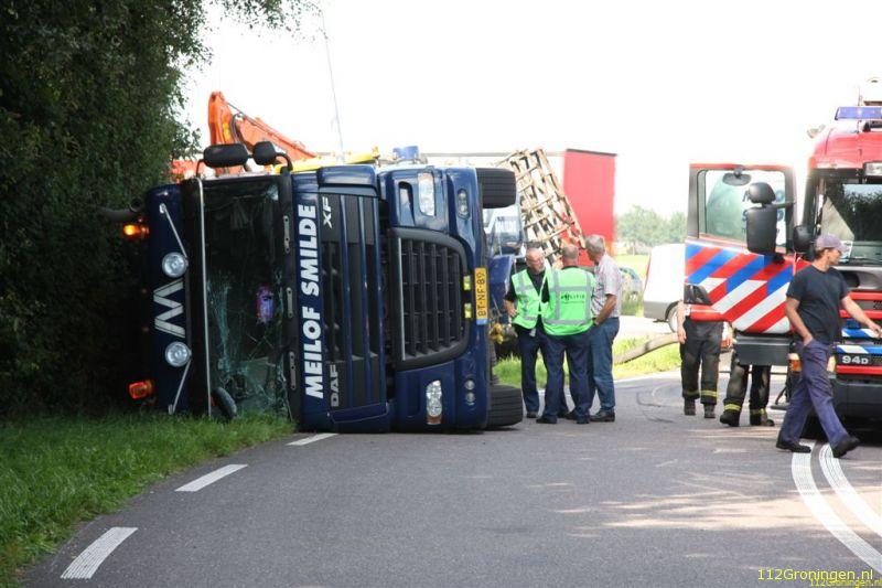 De vrachtauto was in de bocht gekanteld en de chauffeur is door de ambulance meegenomen naar het ziekenhuis, waar hij is onderzocht. Later is de chauffeur door zijn baas weer opgehaald uit het ziekenhuis.