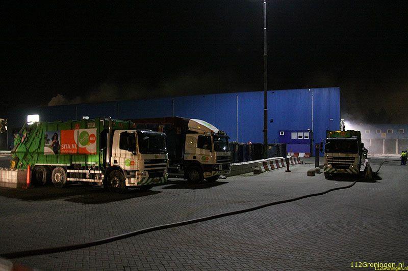 De uiteindelijke opschaling naar zeer grote brand begon om 02.30 uur. Na een automatische melding rukte de brandweer van Groningen uit naar het afvalverwerkend bedrijf Sita aan de Gideonweg. Ter plaatse werd duidelijk dat er grote hitte en rookontwikkeling was in de enorme opslaghal. Het vuur was ontstaan in grote hoeveelheden gesorteerd bouwafval. Toen de geactiveerde sprinklerinstallatie door het water heen was, werd het vuur zo hevig dat er vrees was dat de brand alleen nog van buitenaf bestreden kon worden en de hal verloren zou kunnen gaan. Daarom werden snel extra eenheden opgetrommeld. Naast de brandweer van Groningen, werd ook het korps van Haren gealarmeerd. Door met waterkanonnen veel water te spuiten op de bergen afval, kon verdere uitbreiding van de brand voorkomen worden.