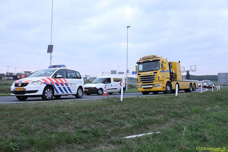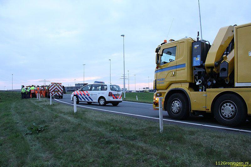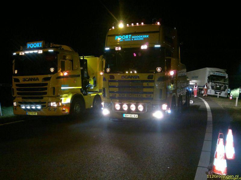 De verkeers ongevallen dienst van de politie heeft een onderzoek ingesteld naar de toedracht van het ongeluk. Poort was tot na middernacht bezig met de klus. De chauffeur raakte gewond.