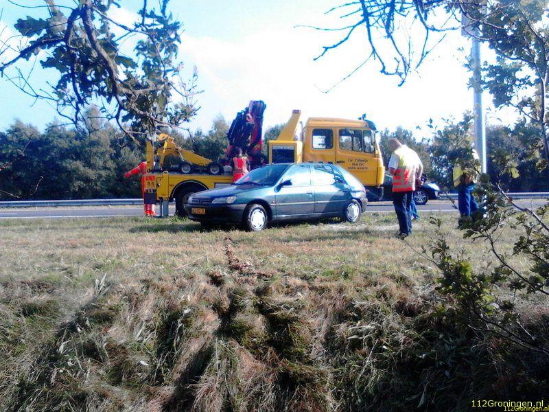 Tolbert - Een automobilist is gisteren met zijn auto in een sloot naast de A7 beland.