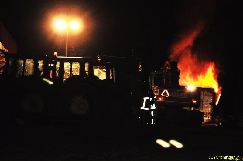 Bij aankomst van het korps Appingedam bleek er brand te woedden in een opslagcontainer op het erf van een loonbedrijf. De brandweer had de brand snel onder controle maar had niet genoeg bluswater om de brand te kunnen doven. Hierop riep men de assistentie in van het brandweerkorps Delfzijl die hierop ter plaatse kwam met een grote watertank. Nadat alle resten waren geblust kon men weer terug keren naar de kazerne. Wat de oorzaak is van de brand in onduidelijk.