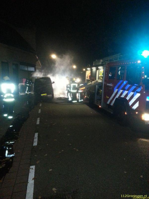 Nieuwe Pekela - In de Jan R. Stuutstraat in Nieuwe Pekela is maandagnacht om 00:40 uur een auto door brand verwoest. Er was geen redden meer aan.