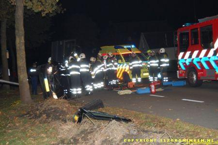 Hoe het ongeluk kon gebeuren is nog niet duidelijk. De persoon in de auto zat bekneld en moest door de toegesnelde hulpdiensten uit zijn benarde positie bevrijd worden. Naast de brandweer van Zwaagwesteinde en ambulance kwam ook het MMT uit groningen om eerste hulp te verlenen. Het slachtoffer is met onbekend letsel naar het ziekenhuis overgebracht.