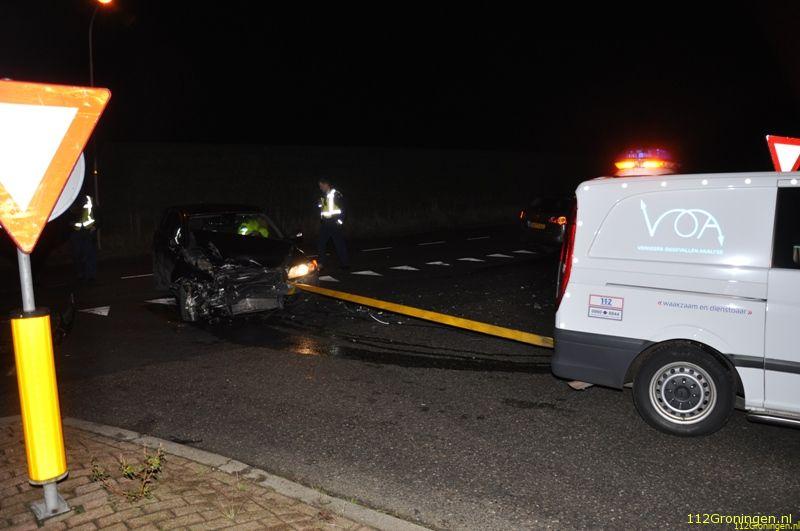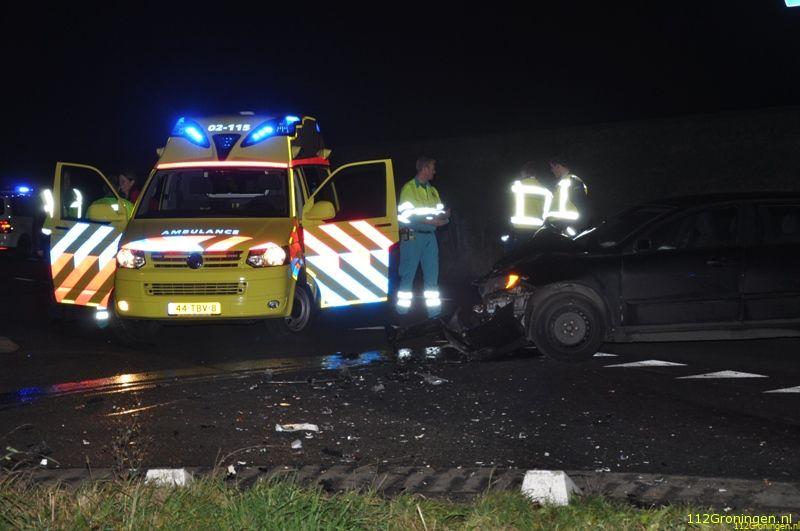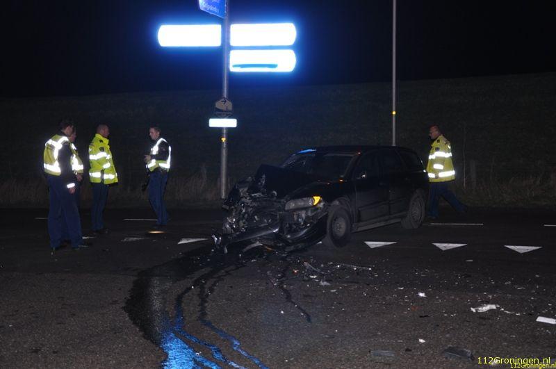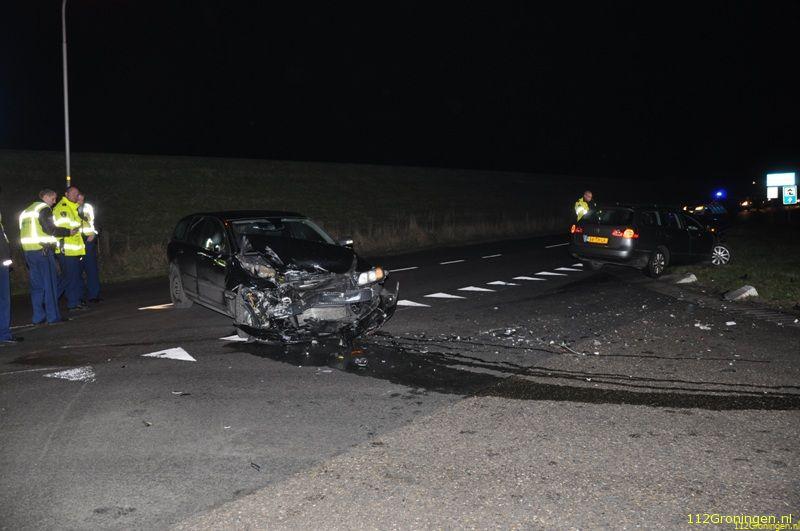 Het ongeval ontstond precies op de provinciegrens ter hoogte van de afslag Stadsweg. Vermodelijk wilde een automobilist afslaan, maar zag daarbij een tegenligger over het hoofd. Een frontale aanrijding was het gevolg. Een ambulnce is voor de zekerheid ter plaatse gekomen. Na een medische check bleek niemand noemenswaardig letsel te hebben opgelopen. De ravage was groot en de auto’s raakten flink beschadigd. Het overige verkeer ondervond veel hinder van het ongeval, waardoor een kleine file ontstond. Nadat de Verkeers Ongevallen Analyse van de politie ter plaatse kwam kon al snel een wrak van de weg worden gesleept, waarna het verkeer weer doorgang vond. (www.rtvnof.nl)