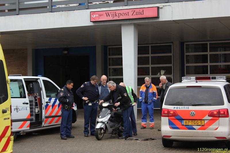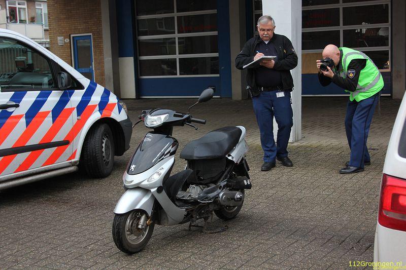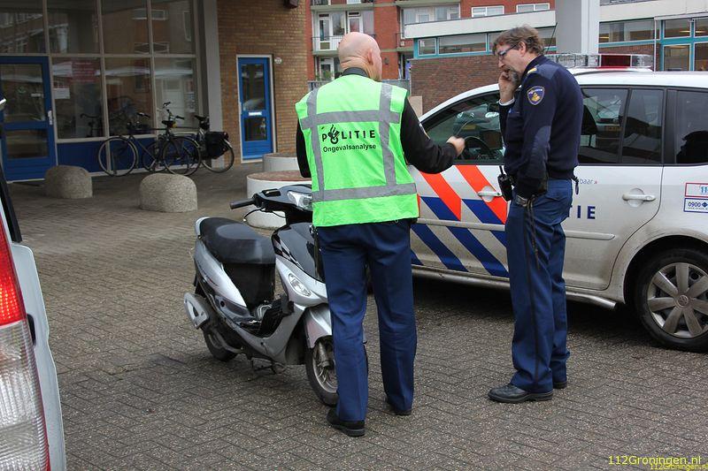Omstreeks 12.30 uur ontving de politie een melding van een scooterbestuurder in de Van Schendelstraat door een personenauto was aangereden. De automobilist ging er na het ongeval vandoor en had het 40-jarige slachtoffer uit Groningen gewond achtergelaten. Getuigen noteerden het kenteken van de auto en belden de politie. Op basis van kentekengegevens troffen agenten de eigenaar van de auto in zijn woning in de Multatulistraat in Groningen aan. Die verklaarde dat zijn 18-jarige vriend, die ook in de woning aanwezig was, in de auto had gereden. Omdat de toedracht niet duidelijk werd moesten beide mannen mee naar het politiebureau. Het slachtoffer werd arm- en beenletsel overgebracht naar het ziekenhuis. De auto werd door de politie in de omgeving aangetroffen en voor onderzoek meegenomen. De politie stelt een onderzoek in.