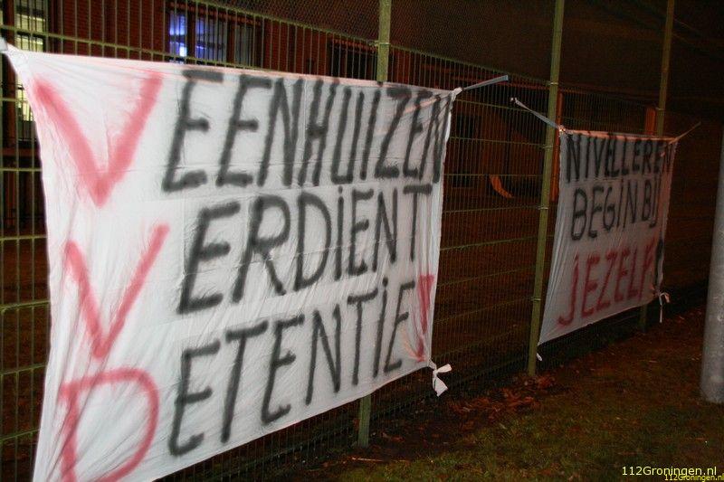 Veenhuizen - Woensdagmorgen werd om 07.15 uur voor de poort van PI Esserheem een statement gemaakt met betrekking tot de plannen van het kabinet om de gevangenissen in in het Noorden van Nederland te sluiten.