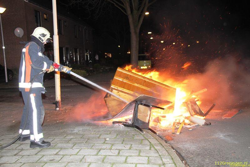Nog voor twaalf uur waren er in Winschoten drie brandjes achter elkaar. De brandweer kon van het ene brandje direct doorrijden naar het volgende brandje een paar 100 meter verderop. Later op de avond was er nog een buitenbrand bij verzorgingstehuis ’t Vondelhuys. Alle resten werden onder toeziend oog van de politie en brandweer direct opgeruimd door de gemeente.