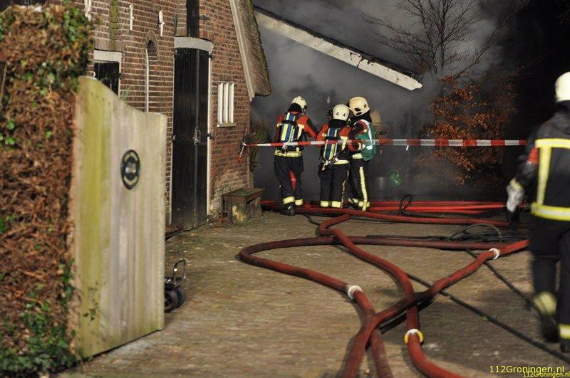 Ter plaatse trof men een uitslaande brand aan in een schuur achter de woonboerderij. Daar stond een grote schuur in brand. Er stond een boot in en een auto. Al smnel werd er opgeschaald naar middelbrand. De schade was groot. Over de oorzaak is nog niets bekend.