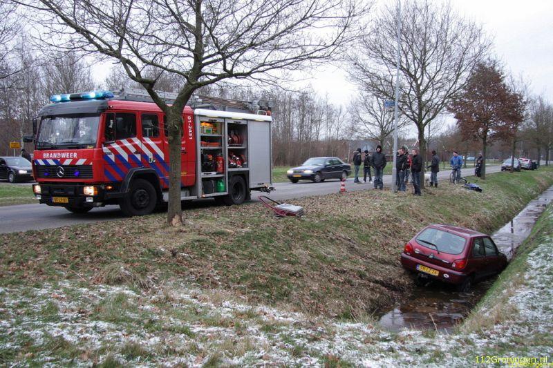 De bestuurder is met onbekend letsel afgevoerd naar het ziekenhuis. Berger Fruitema heeft vervolgens de auto uit de sloot getakeld.
