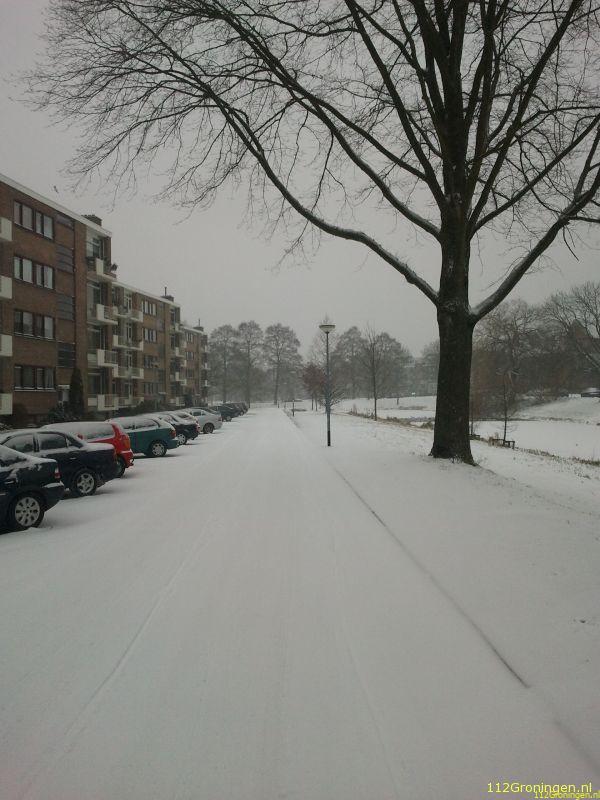 Sommigen waren al 1,5 uur onderweg om op hun bestemming te komen. Het was glad en er lag sneeuw op de weg.