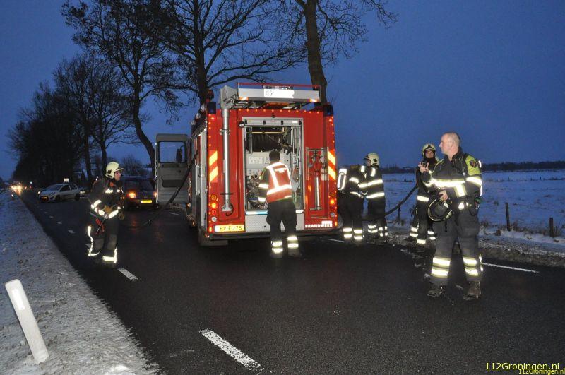De Leekster brandweer die snel ter plaatse was had middels One Seven de brand snel onder controle. Het verkeer werd tijdelijk omgeleid over de Roomsterweg. Een berger heeft later de totaal uitgebrande auto afgesleept. .