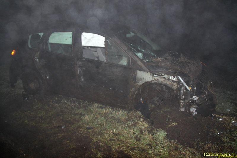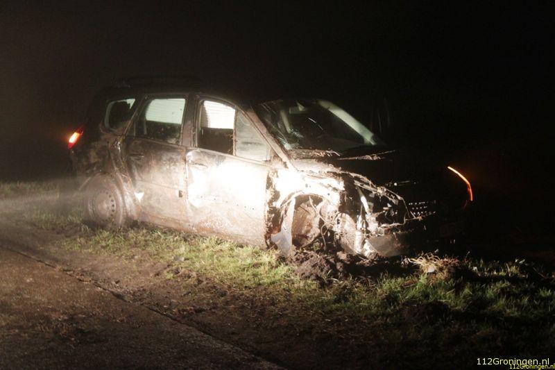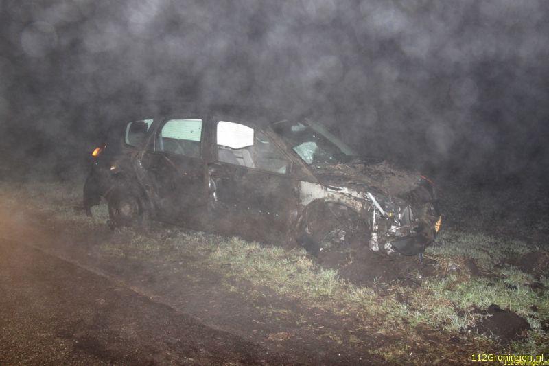 Westerlee - Door dichte mist miste een bestuurder op de DH Vinkersweg de bocht en werd de sloot in gelanceerd.