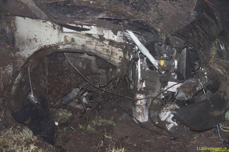 Wonder boven wonder kon iedereen zonder zwaar letsel het voertuig verlaten. De auto is total loss en mist een voorwiel. De berger heeft het voertuig afgesleept.
