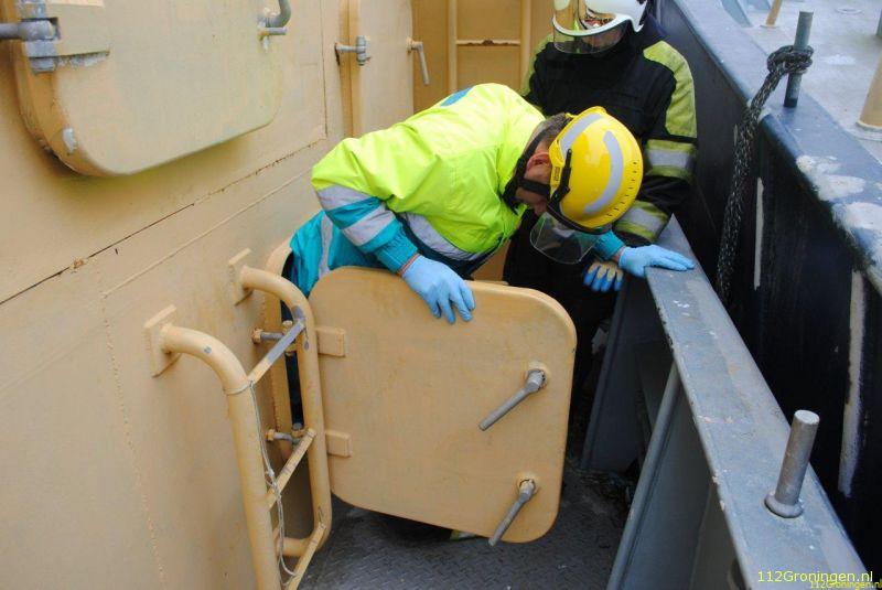 Het andere scenario betrof een joyride die verkeerd was afgelopen. Een voertuig werd gelanceerd en kwam op de rand van een schip terecht. Door deze klap viel een meisje in het ruim. De HV1 van Winsum heeft samen met brandweer Zoutkamp en het ambulancepersoneel de slachtoffers uit de auto bevrijdt waarna ze werden geattendeerd op het roepende meisje uit het ruim. Deze werd horizontaal uit het ruim getild waarna deze oefening ook was afgelopen en men voor een maaltijd naar Restaurant ZK86 ging. ’s Middags kwam de gezamelijke oefening tussen alle deelnemende disciplines aan bod. Op het Reitdiep had een onderhoudsvaartuig van Provincie Groningen een aanvaring gehad met een viskotter.