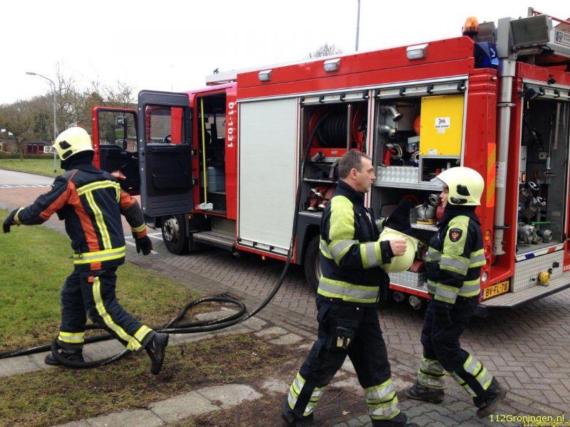 Leek - Zondagmiddag werd de Leekster brandweer opgeroepen voor een woningbrand aan de Goldbergsingel in Leek.