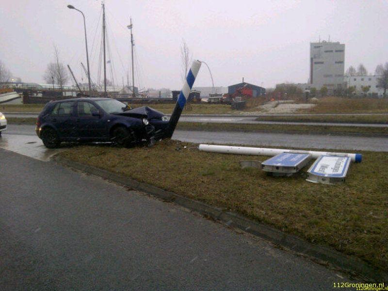 Een buschauffeur meldde tijdens zijn rit een aanrijding dat een auto tegen een verkeerspaal was aangereden.