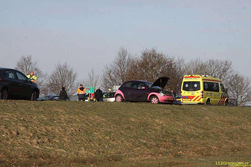 Kolham - Op de A7 is dinsdagochtend rond 07.45 uur een persoon gewond geraakt bij een verkeersongeval. Door een nog onbekende oorzaak botste verschillende auto's ter hoogte van Kolham op elkaar.