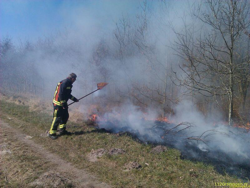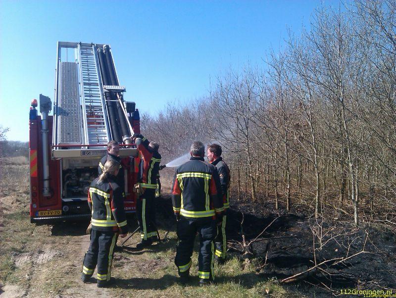 Tijdens het aanrijden werd al een rookpluim waargenomen waardoor men op het juiste adres uit kwam achter een boerderij aan de Stationsstraat te Scheemda. Door de combinatie van het droge gras en wind heeft het vuur zich snel verspreid. De Brandweer heeft met behulp van vuurzwepen en water het vuur weten te blussen.